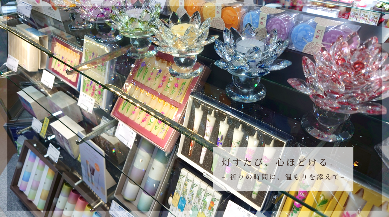 位牌、数珠、お線香やろうそく、和雑貨に至るまでその品揃えは伊賀一です。