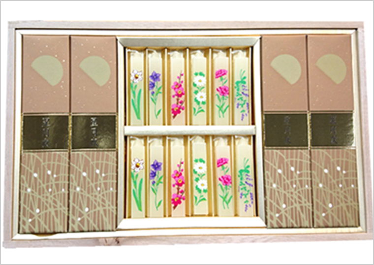 ご進物用の化粧箱に入ったお線香/ろうそくのセットです。