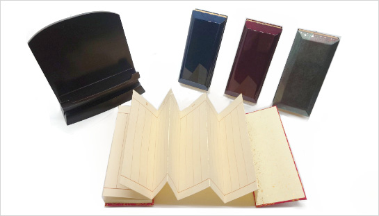 蛇腹状の和紙をまとめたものが多く、お位牌の代わりとしてお仏壇にお祀りしたり繰出位牌の代わりとして先祖代々を記して使用します。