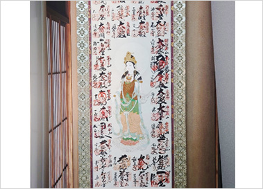 西国、四国、坂東秩父など各霊場を巡礼し満願した”まくり”を表装したもの。