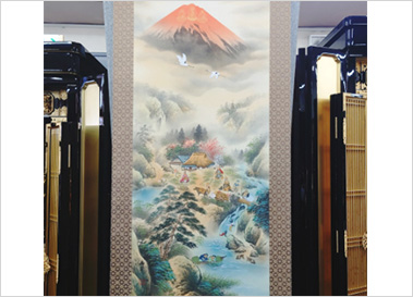 お茶席や床の間で使用する普段使いの掛軸から仏事に使用するものまで、サイズ・種類まで幅広く取り扱っています。